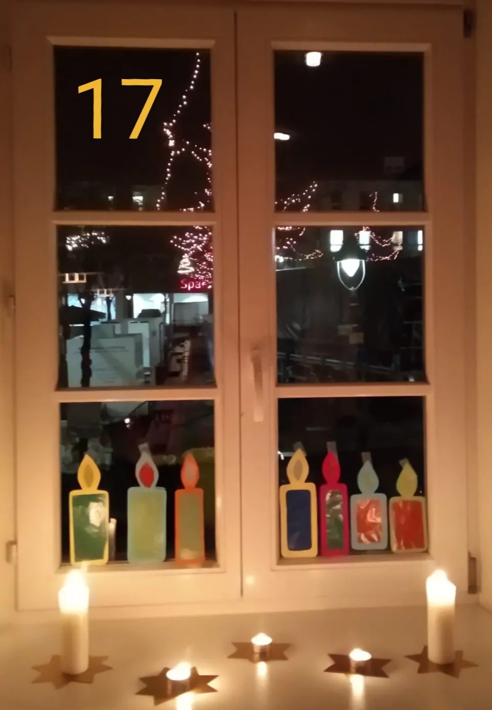 Das heutige Adventsfenster „öffnet sich“ am Alten Pastorat in der Frankfurter Straße. Das Fenster wurde gestaltet von einigen Mitgliedern des Gemeindeausschusses von St. Martinus. Das Fenster ist geschmückt mit Kerzen, denn Kerzen spielen im Advent eine wichtige Rolle.