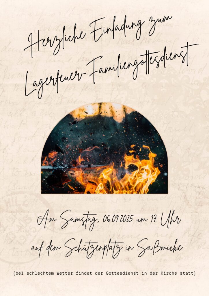 17:00 | Lagerfeuer-Familiengottesdienst + Zu Google Kalender hinzufügen + iCal / Outlook exportieren Schlagwörter:Eucharistie Datum 06. Sep. 2025 Abgelaufen! Uhrzeit 17:00 Kategorien Eucharistie Ort St. Johannes Saßmicke Im Großen Garten 7, 57462 Olpe Gemeinden St. Johannes Saßmicke
