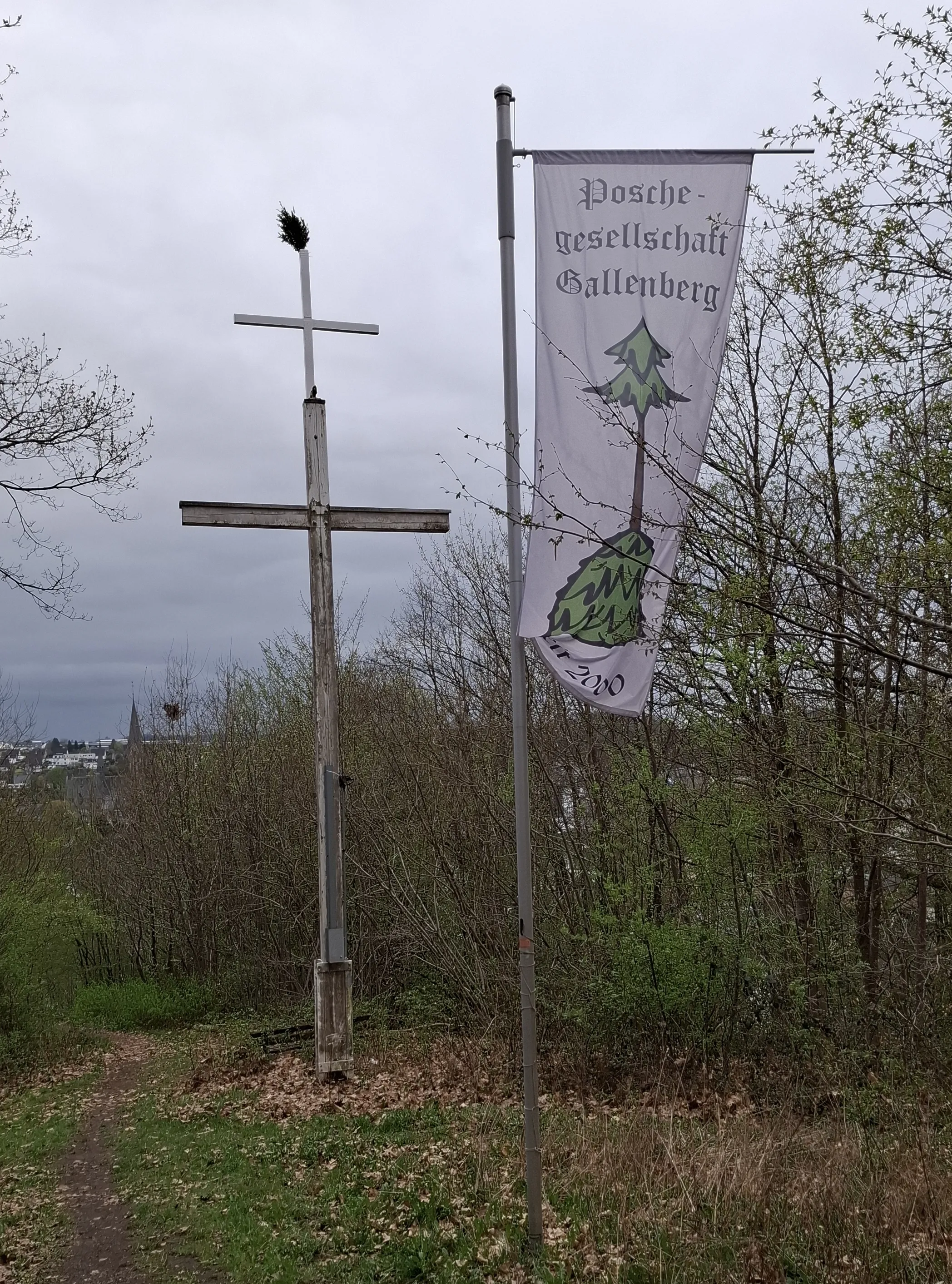 Am heutigen Sonntag, dem Palm­sonntag, lassen wir unser Leucht­kreuz in der St. Marti­nus­kirche segnen. Wir werden mit einer großen Anzahl von Posche­brü­dern beim Bußgot­tes­dienst anwe­send sein. Im Anschluss wird das Kreuz auf den Gallen­berg gebracht und aufgehängt.