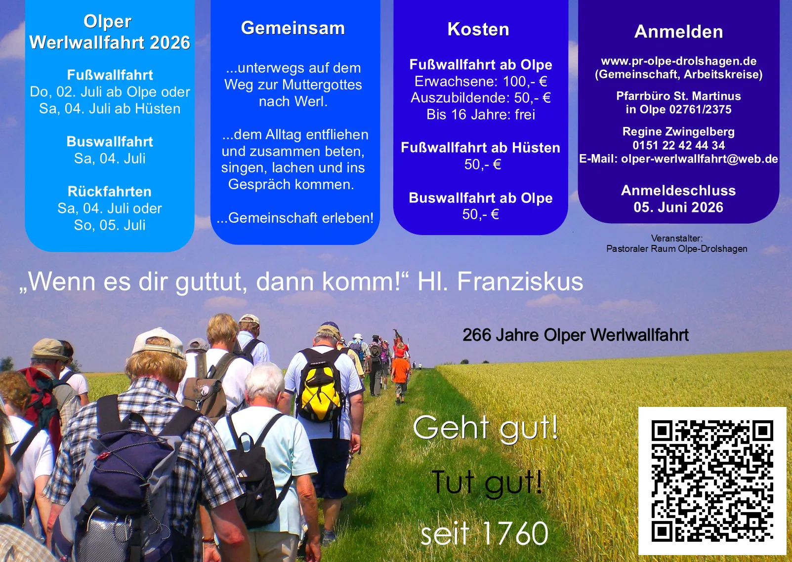 Die Anmeldung für die Wallfahrt 2026 ist schon möglich.