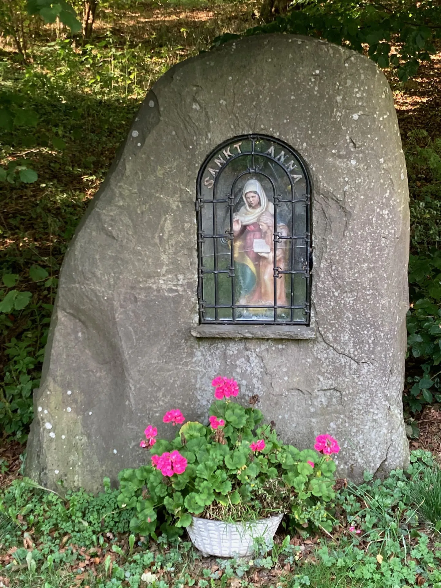 Sankt-Anna-Statue im Findling