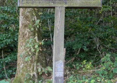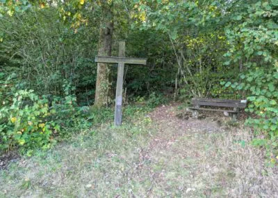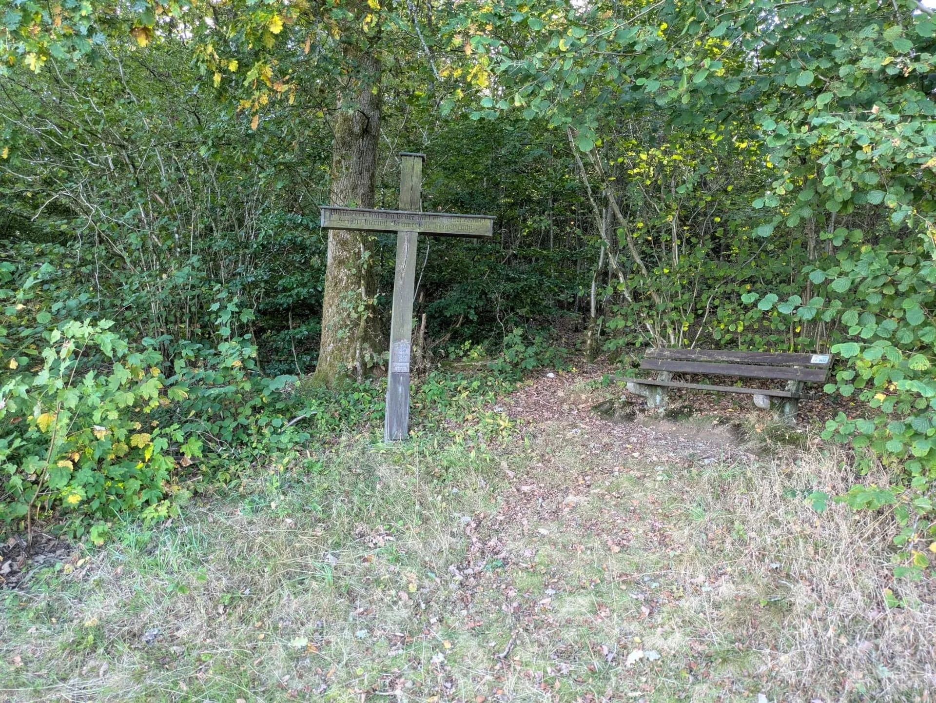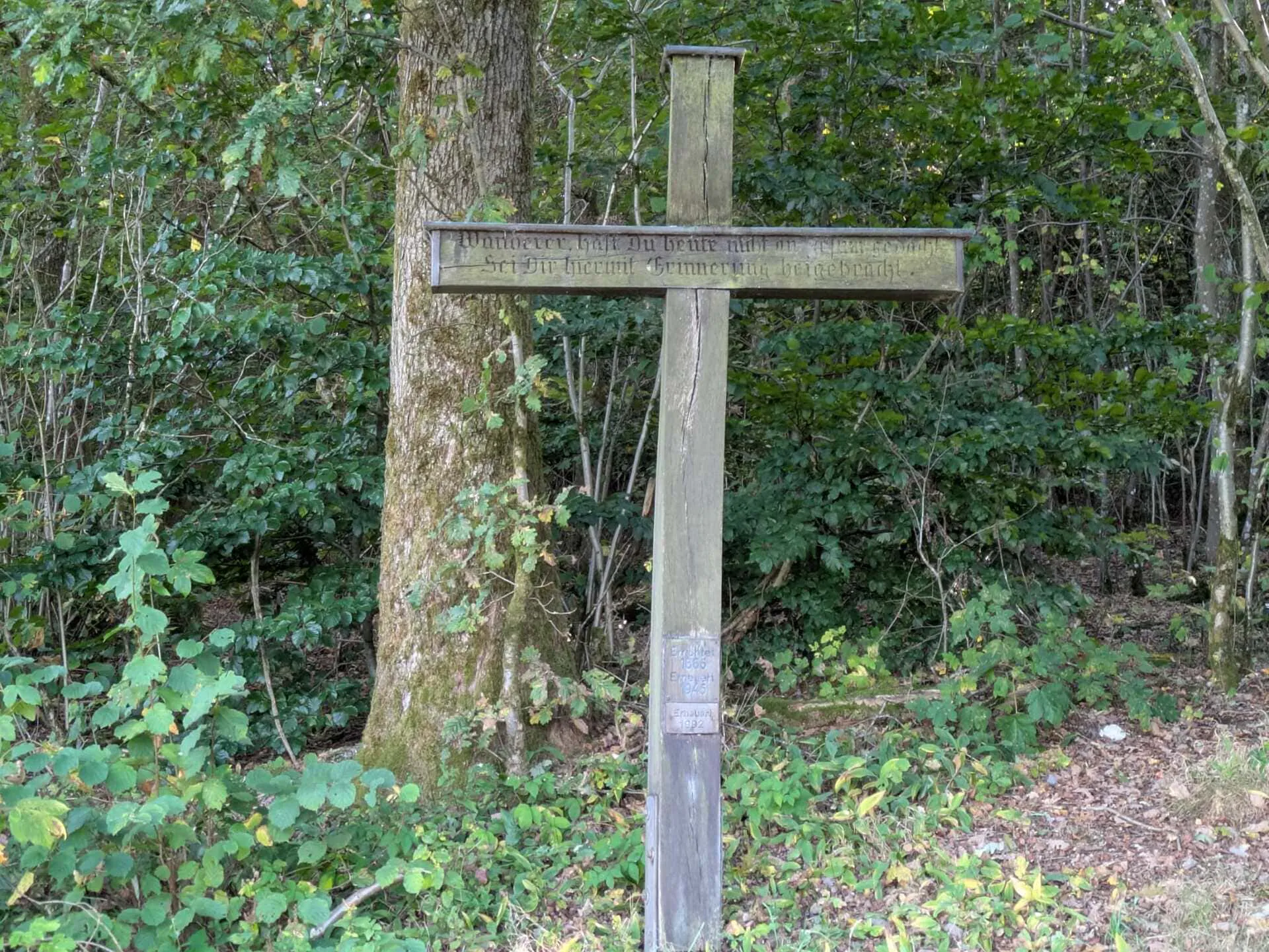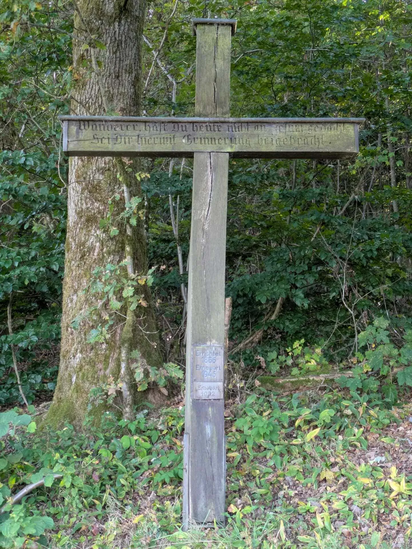 Auf dem Weg zwischen Stade und Rhode steht auf der Anhöhe des Teilenbergs seit 1866 ein großes Holzkreuz mit Inschrift. Das Kreuz wurde von dem Walzwerksbesitzer in Niederstenhammer Josef Hundt errichtet. Es steht an dem Weg, den Josef Hundt zwischen seinem Wohnort Olpe und seinem Walzwerk mit seinem Pferd häufig geritten ist. Die Inschrift lautet: “Wanderer, hast du heute nicht an Jesum gedacht, sei dir hiermit Erinnerung beigebracht”. Die Inscrhift geht quer über den Querbalken in zwei Zeilen. Am Kreuzesstamm weiter unten befinden sich zwi Plaketten. Auf der ersten steht “Errichtet 1866 — Erneuert 1945”. Auf der zweiten Plakette unterhalb steht “Erneuert 1992”. Die Plaketten weisen auf die Errichtung und die Erneuerungen des Kreuzes hin. Das Kreuz wird an der Oberseite mit Metallblechen vor der Witterung geschützt.