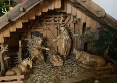 Krippe mit handgeschnitzten Krippenfiguren
