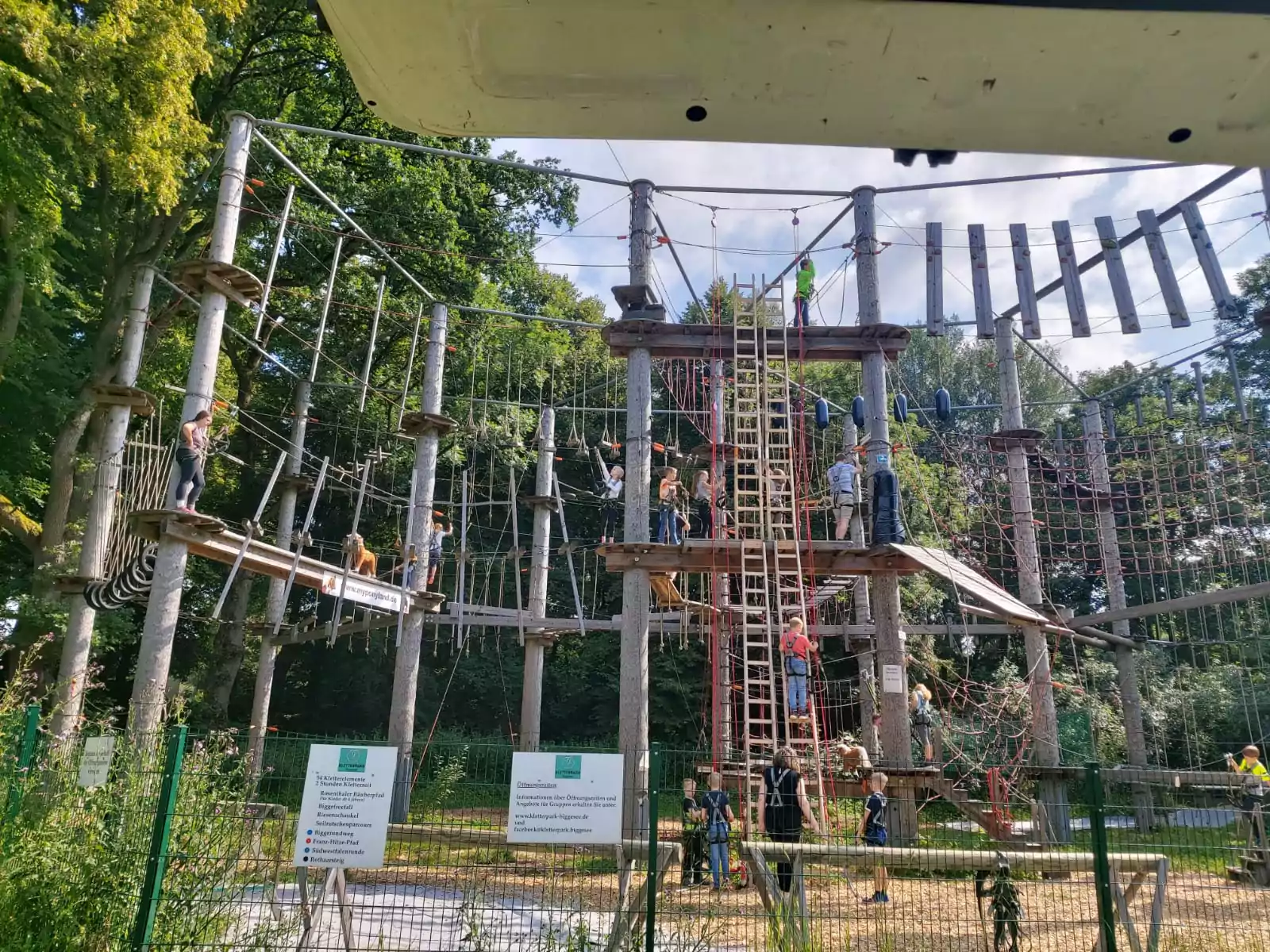 Im Rahmen der dritten Sommerferienwoche der OT Olpe zum Thema „Vertrauen“ wanderten 20 Kinder am Dienstag-Morgen zum Kletterpark im Rosenthal. Nach einer Einweisung zum Umgang mit dem Klettergurt konnten die Kinder ihren Mut und gegenseitiges Vertrauen in der Höhe auf die Probe stellen. Groß half Klein und Klein half Groß, als es um das Sichern an der Seilbahn ging. Zwei Stunden lang war so die Möglichkeit gegeben, gemeinsam oder aber auch alleine die verschiedenen Parcours in luftiger Höhe und bei strahlendem Sonnenschein zu bewältigen.