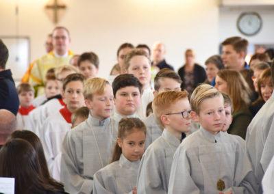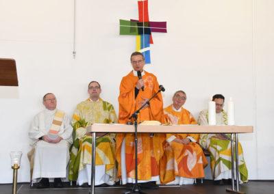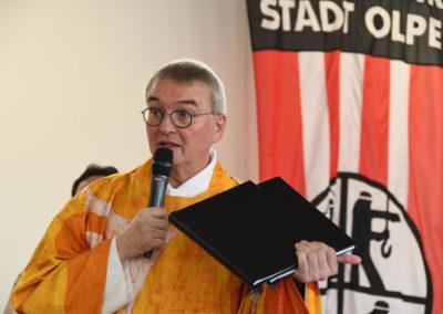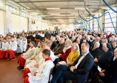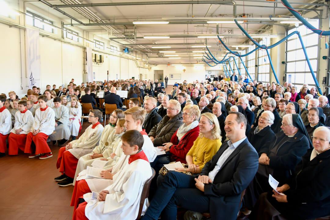 Zu dem im Feuerwehrgerätehaus stattfindenden zentralen Gottesdienst strömten zahlreiche Besucher aus allen Gemeinden. Das Interesse am Ergebnis der Pastoralvereinbarung war erkennbar groß: die umfunktionierte Halle der Freiwilligen Feuerwehr Kreis Olpe war mit Gläubigen aller Altersklassen vollbesetzt. Viele Mitwirkende aus den Gemeinden, darunter Vertretern aus der Steuerungsgruppe, die Kirchenband „Crossover“ und der Musikzug der Freiwilligen Feuerwehr Olpe, machten den Gottesdienst zu einem besonderen Ereignis.
