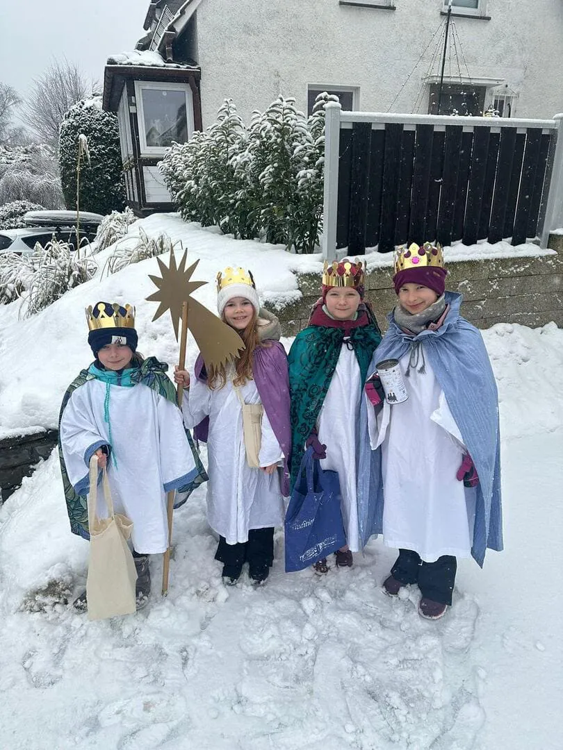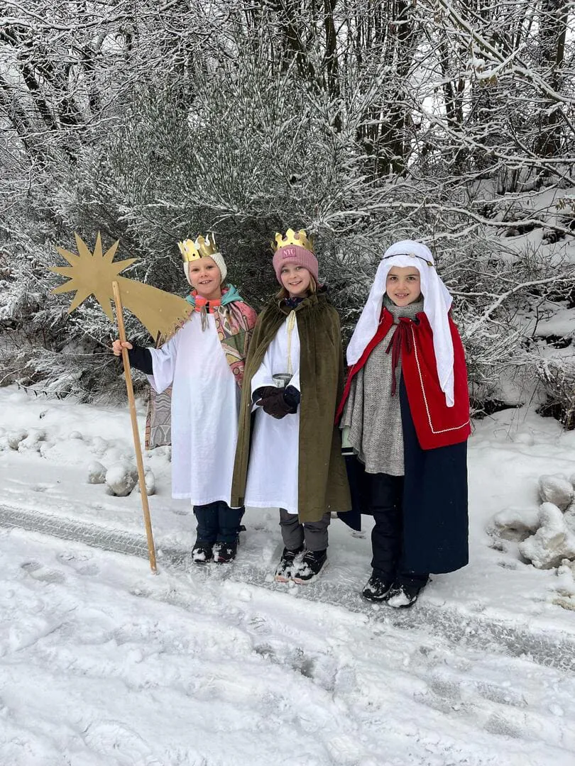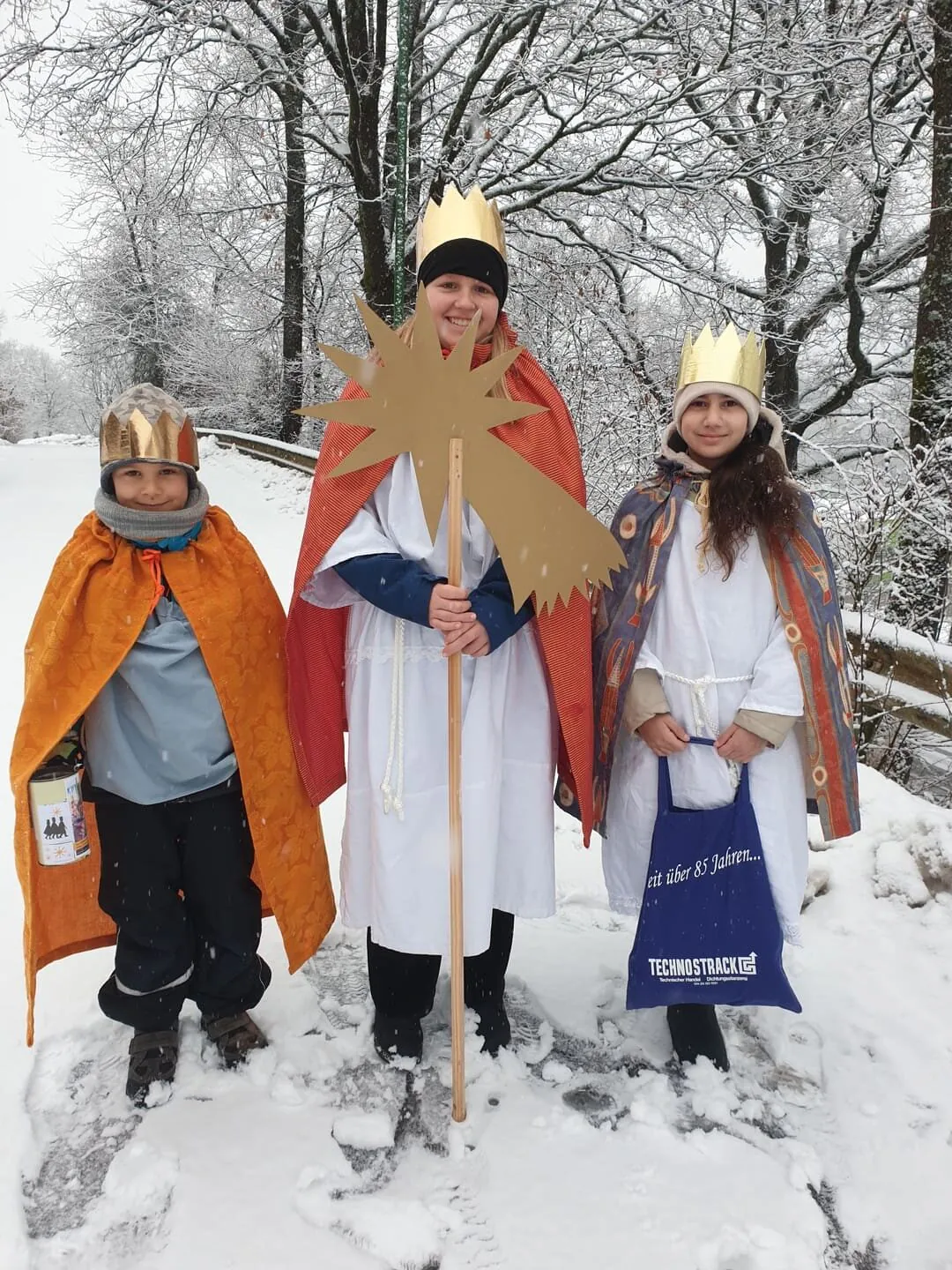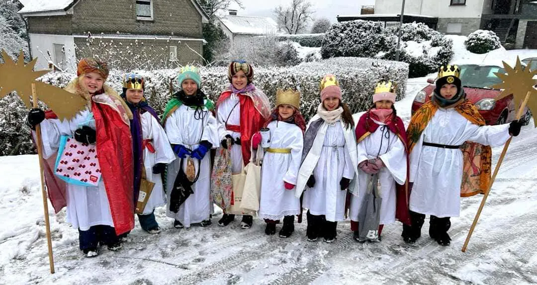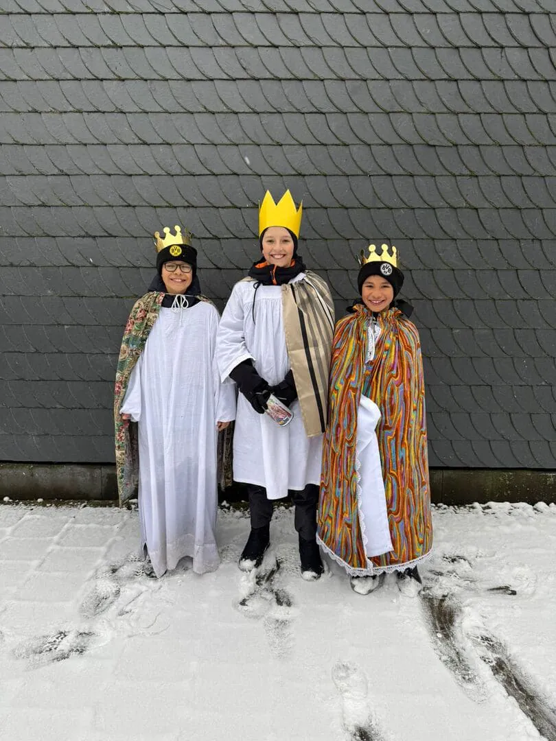 Am 10.1.2026 zogen 39 Kinder in 9 Gruppen nicht durch eine Wüste, sondern durch eine Schneelandschaft durch die Gemeinde. In diesem Jahr unter dem Motto Sternsingen gegen Kinderarbeit. Sie brachten den Segen in jedes Haus 20 C*M+B+26. Zum ersten Mal nach langer Zeit hatte Peter Rademacher die Idee für ein gemeinsames Mittagessen in den Gemeinderäumen in der Hl. Geist Kirche. So konnten sich alle Sternsinger mit Spaghetti Bolognese und einer Waffel stärken. Ein Dank geht somit an die freiwilligen Helfer vom Küchenteam. Ein besonderer Dank geht auch an Maria Stracke die neue Gewänder für die Sternsinger genäht hat. Alle Sternsinger haben gezeigt, wie man an so einem Tag anderen Kindern, denen es nicht so gut geht helfen kann. Unser Gesamtergebnis beträgt stolze 3250,76€ und zusätzlich ging noch eine große Süßigkeitenspende an das Josefshaus.