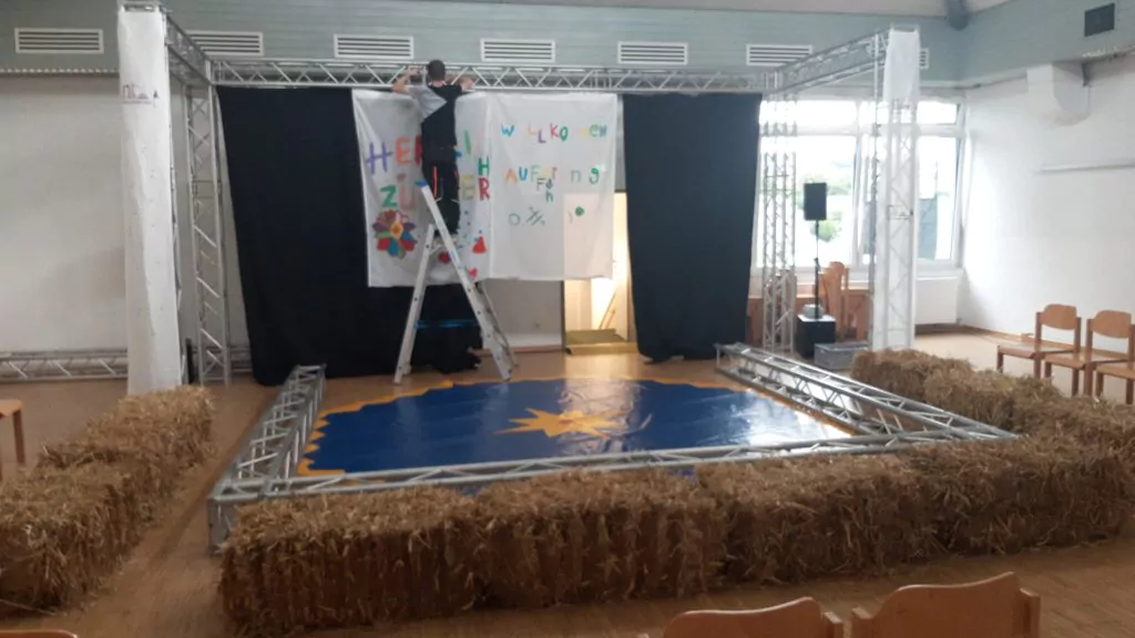 Nachdem die Kinder am Donnerstag schon einmal mit ihren Gruppen in der Manege proben durften, war am Freitag dann der große Tag gekommen. Über Nacht war im Saal des Lorenz-Jaeger-Hauses eine richtige Zirkusmanage entstanden, die alle Jungs und Mädels beim ersten Betreten zum Staunen brachte.
