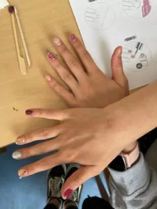 So boten Emilia und Antje erstmalig ein Nageldesign in der OT Olpe an. Die angemeldeten Mädels lernten dabei zunächst verschiedene Techniken kennen. Im Anschluss konnten sie sich ihre Fingernägel selbst aufwendig gestalten, passend zur Jahreszeit, ihrer Kleidung oder Hobbies. Zum Einsatz kamen neben unterschiedlich farbigem Nagellack natürlich auch Feilen, Sticker und UV-Lampen. Mit gegenseitiger Unterstützung entstanden so kleine Kunstwerke auf den vielen Fingernägeln.